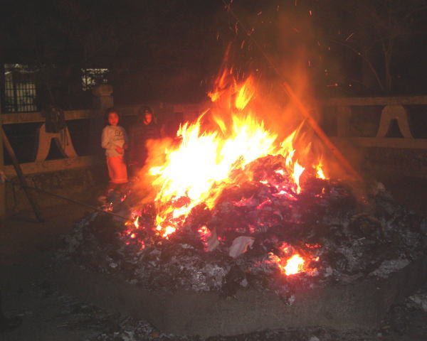 どんど祭とは、お正月に使った門松やしめ飾り、お守り、破魔矢等を持ち寄って焼き、