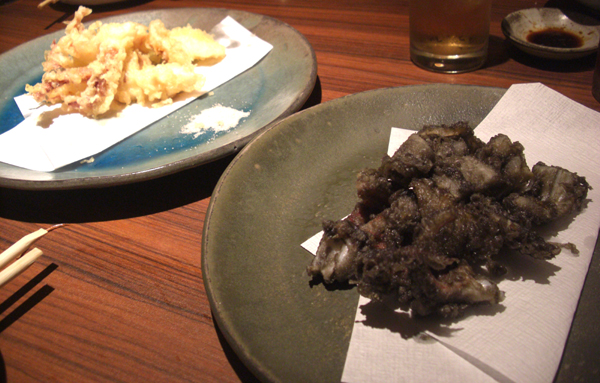 白いのは普通の天ぷら、黒いのはイカ墨の天ぷらです♪