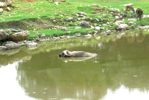 動物達も暑いらしく、あの子もこの子も池に浸かっていました。