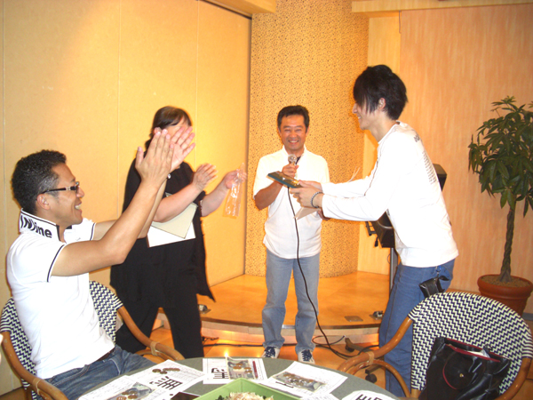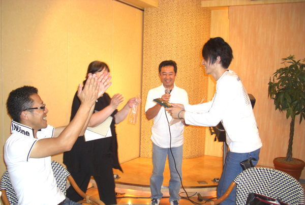 レクリェーション委員長であり司会・進行者のY氏、大健闘で満面の笑みです!