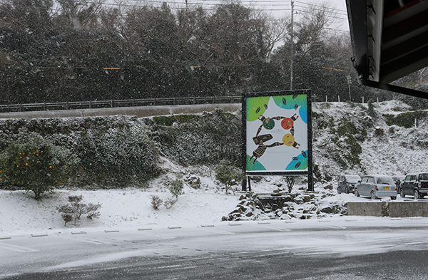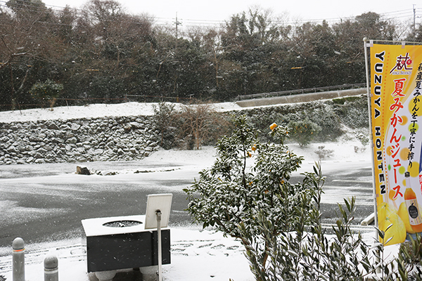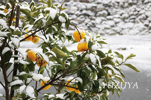 社屋前の柚子の木は、雪が積もってキレイでした♪