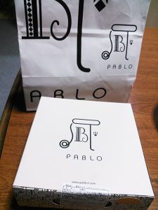 PABLOの焼きたてチーズタルト! 大阪梅田のJRから阪急方面に行く時に、 買えたら買おうと思っていたパブロのチーズタルト♪ 運の良いことに2人しか並んでおらず、すんなり購入できました。 阪急百貨店で買い物し、1時間後にまた前を通りました。 行列がダラーーーーッと連なっており、ビックリ…