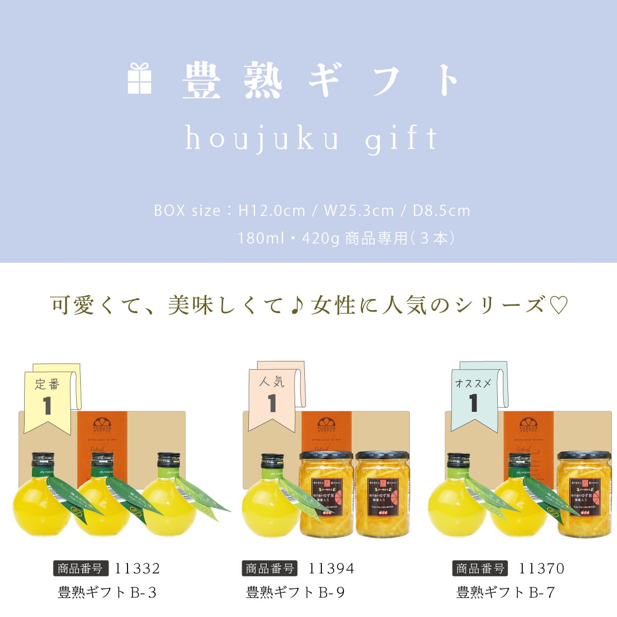他の画像を見る 豊熟ギフトB-9×10箱 冬セール対象 ギフトまとめ買い 通常販売価格 ¥ 30,800 のところ ネット価格 ¥ 21,560 税込 (1箱あたり2,156円) 詳細を見る お気に入りに登録する