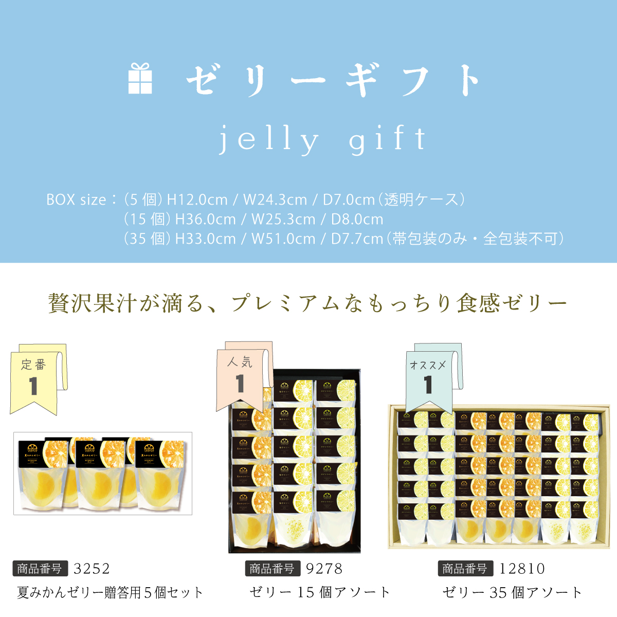 他の画像を見る 夏みかんゼリー贈答用箱入り(80g)5個入り×10箱[3252-p10] 冬セール対象 帯包装のみ ギフトまとめ買い 名入れのし不可 通常販売価格 ¥ 18,000 のところ ネット価格 ¥ 14,400 税込 (1箱あたり1,440円) 詳細を見る お気に入りに登録する