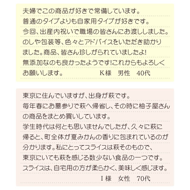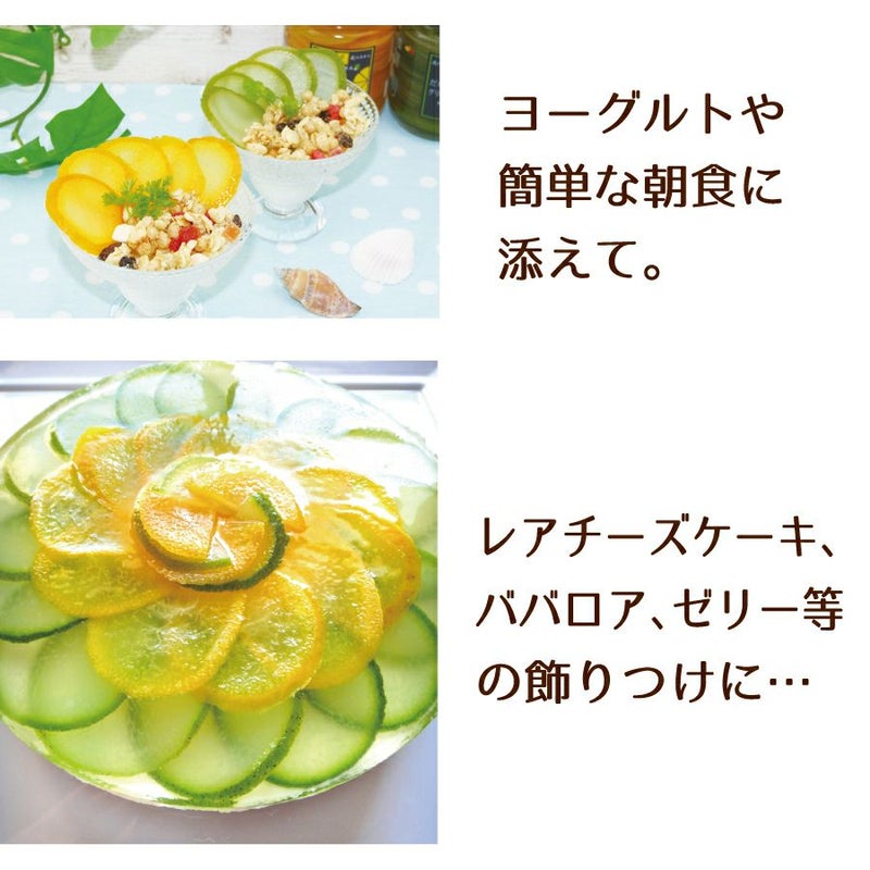 橙スライスがもう無くなるという事で、慌てて注文しました。綺麗なスライスがお料理にはえてとても使いやすかったです。 またいつか作っていただけたら嬉しいです。