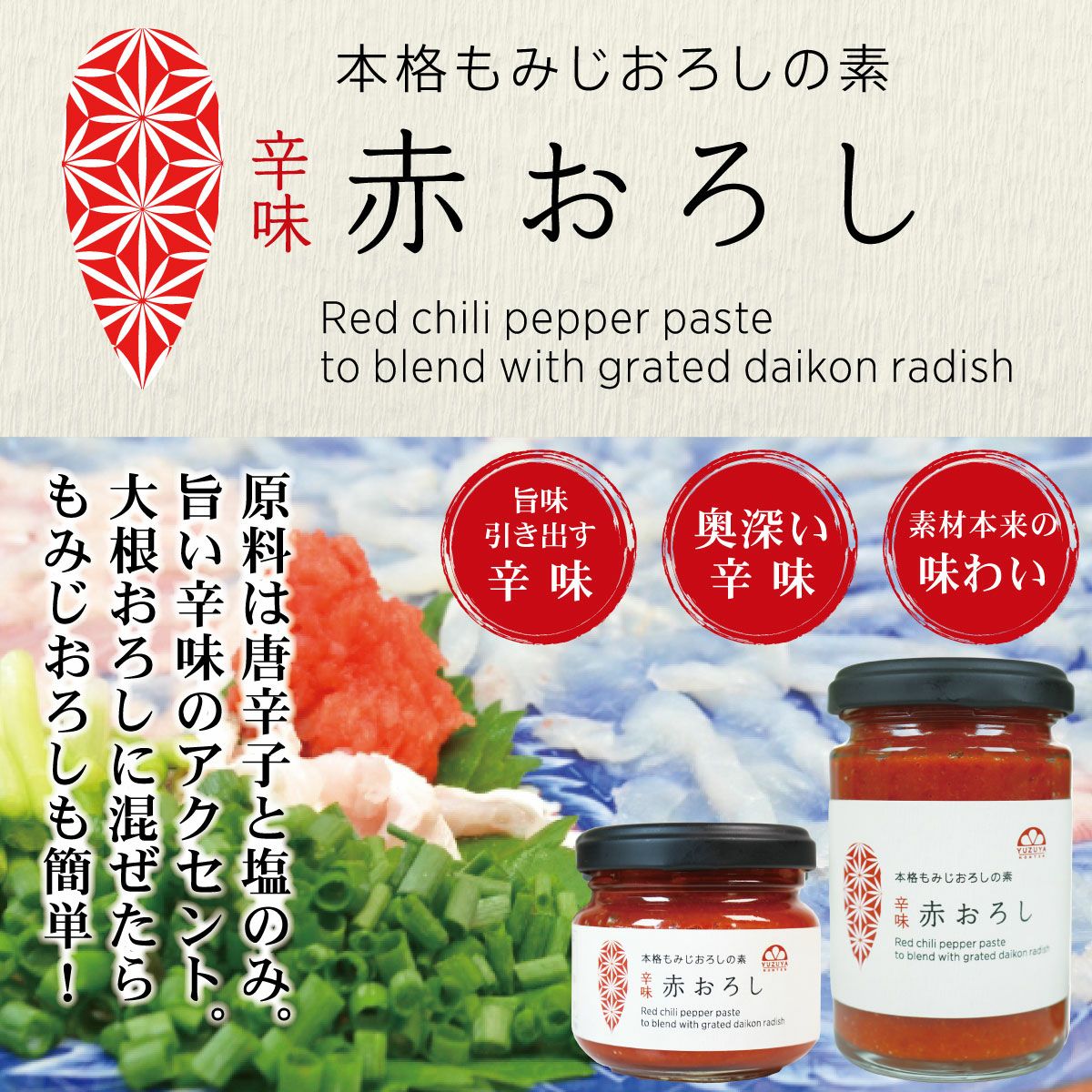 他の画像を見る 赤おろし(150g) 12本 冬セール対象 お得なまとめ買い 通常販売価格 ¥ 12,960 のところ ネット価格 ¥ 9,072 税込 (1本あたり756円) カートに入れる お気に入りに登録する